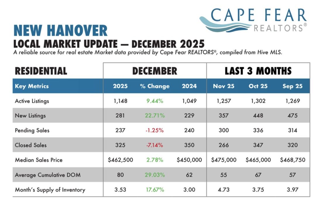 Once March arrives, Wilmington usually sees a noticeable increase in new listings. More inventory gives buyers more options and often puts pressure on sellers to compete on price or concessions.